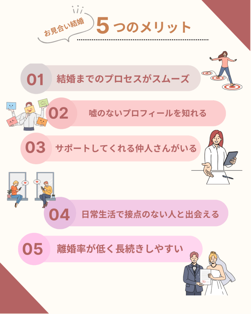 ここでは、お見合い結婚をするメリットを5つ紹介します!